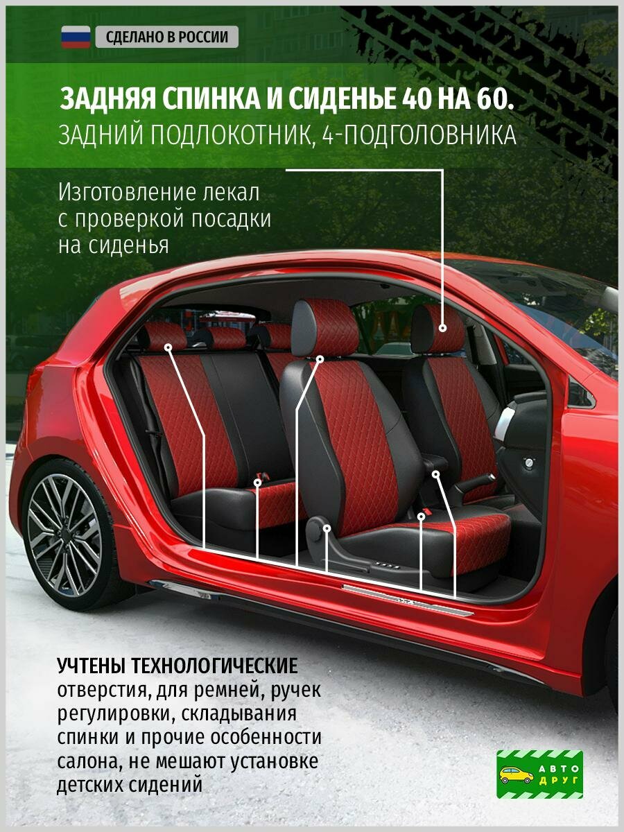 Чехлы для сидений Хендай Сантафе 1 2001-2012 гв Экокожа с ромбом Красный и Черный A0246D148 Автодруг