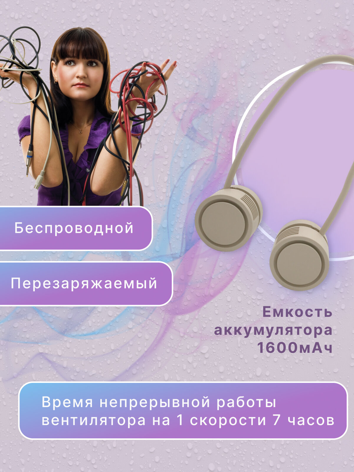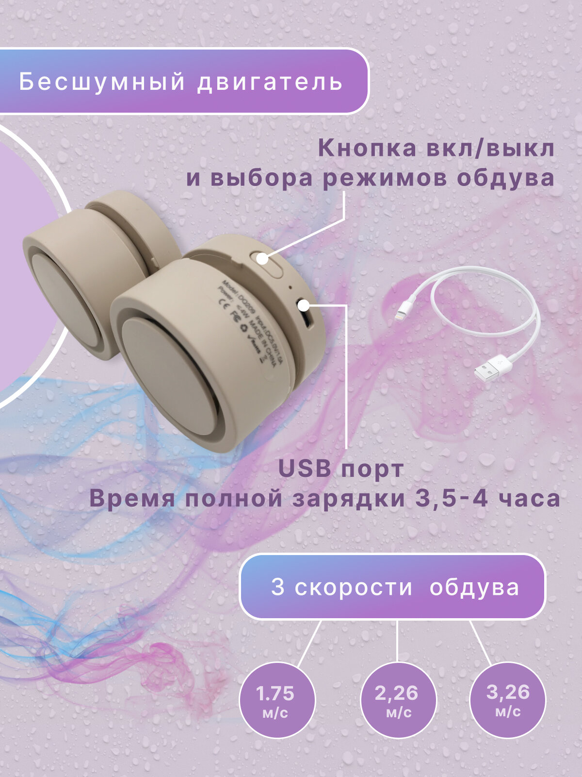 Вентилятор на шею портативный складной с USB, бежевый интересное: