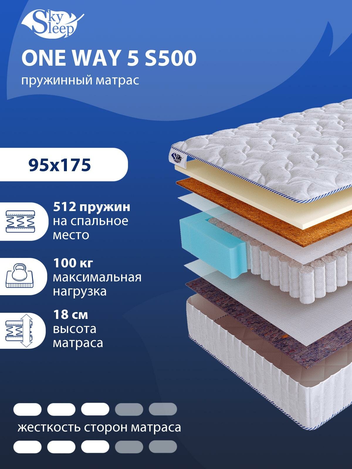 Купить Односторонний ортопедический матрас SkySleep ONE WAY 5 S500 на кровать 95x175