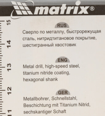Сверло по металлу, 6 мм, HSS, нитридтитановое покрытие, 6-гранный хвостовик Matrix [717602]