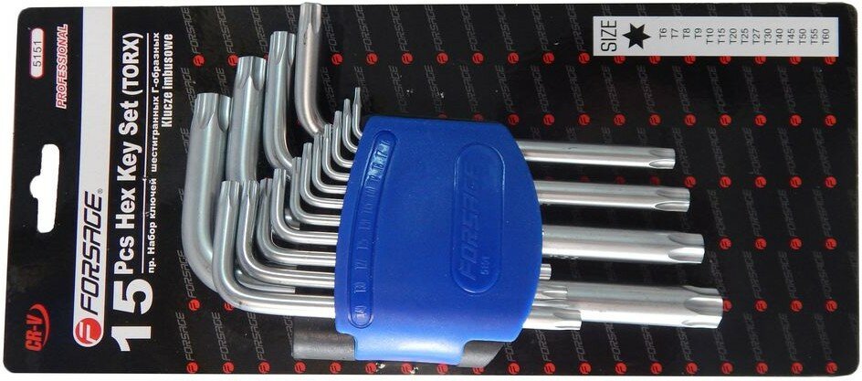 Набор ключей Г-образных TORX с отверстием,15пр.(Т6Н,T7H,T8H,T9H,Т10Н,Т15Н,Т20Н,Т25Н,Т27Н, Т30Н,Т40Н, FORSAGE F5151T (1 шт.)