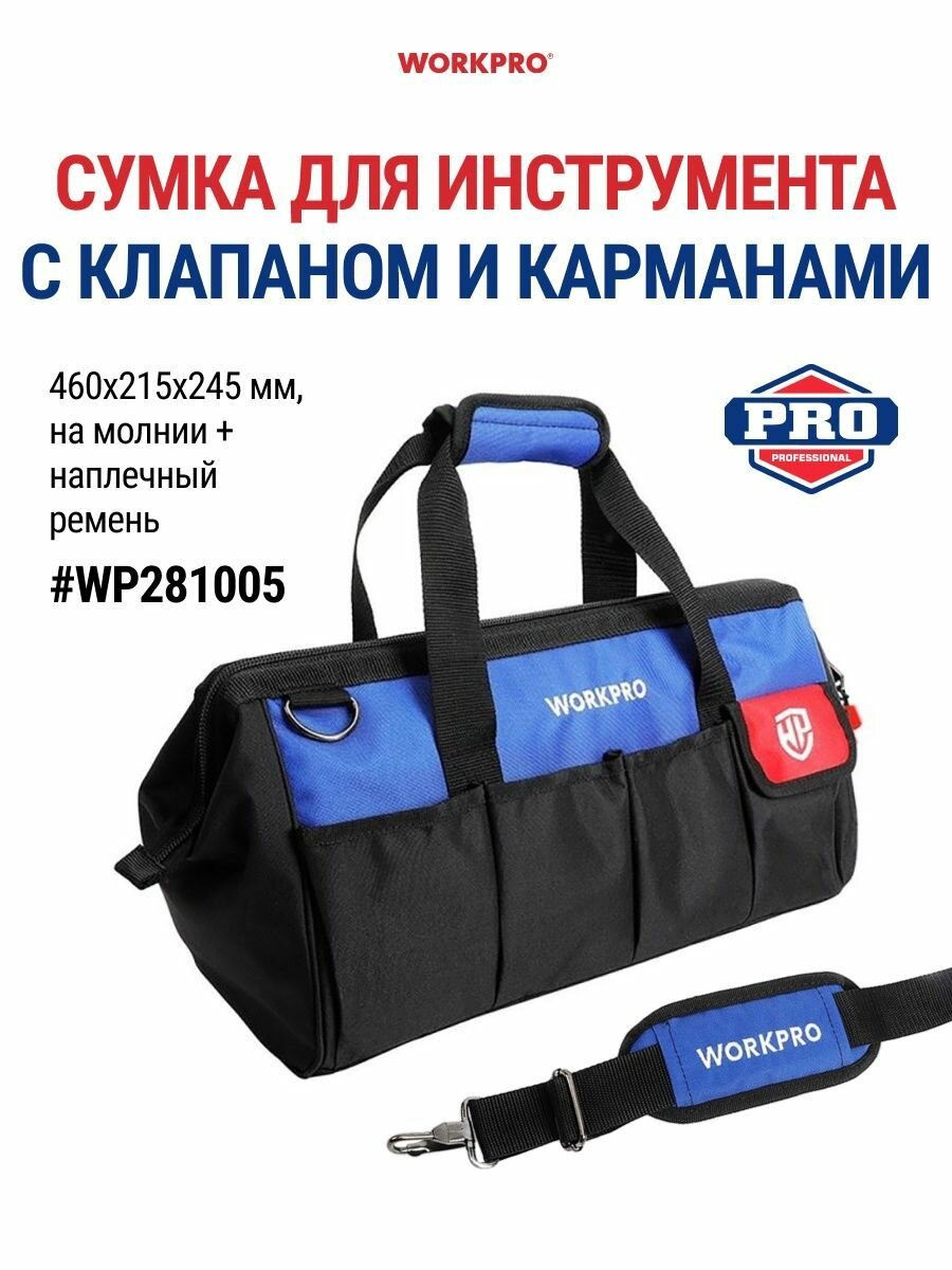 Сумка для инструментов, 460 мм, WP281005, WORKPRO #WP281005, цвет черно-синий