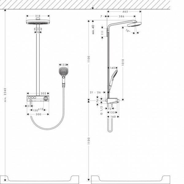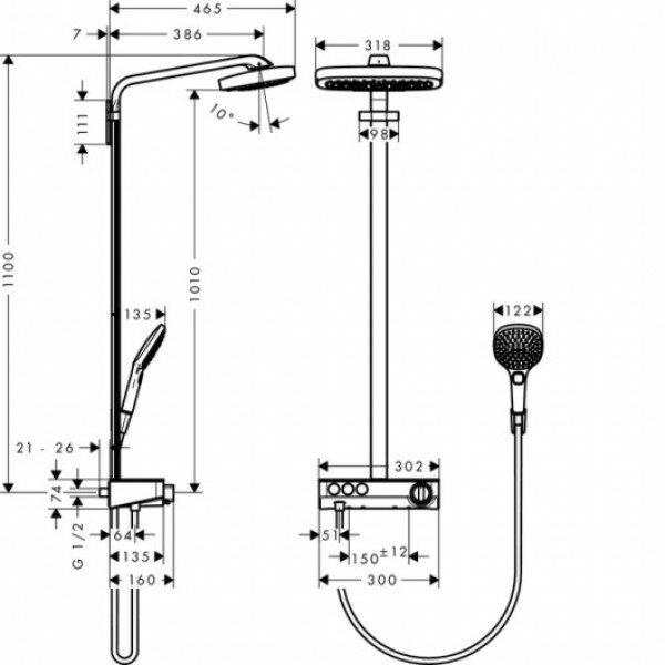 Душевая стойка Hansgrohe Raindance Select E 300 3jet 27127400 Showerpipe белый/хром