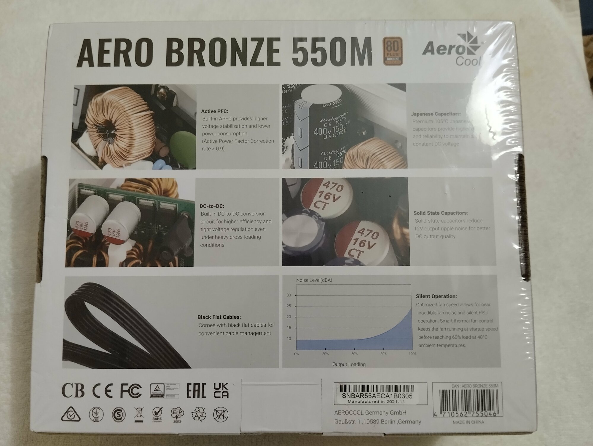 Блок питания 550W AERO BRONZE 550M (ATX12V 2.4, APFC, 12cm Fan, 80Plus Bronze, Cable Management)
