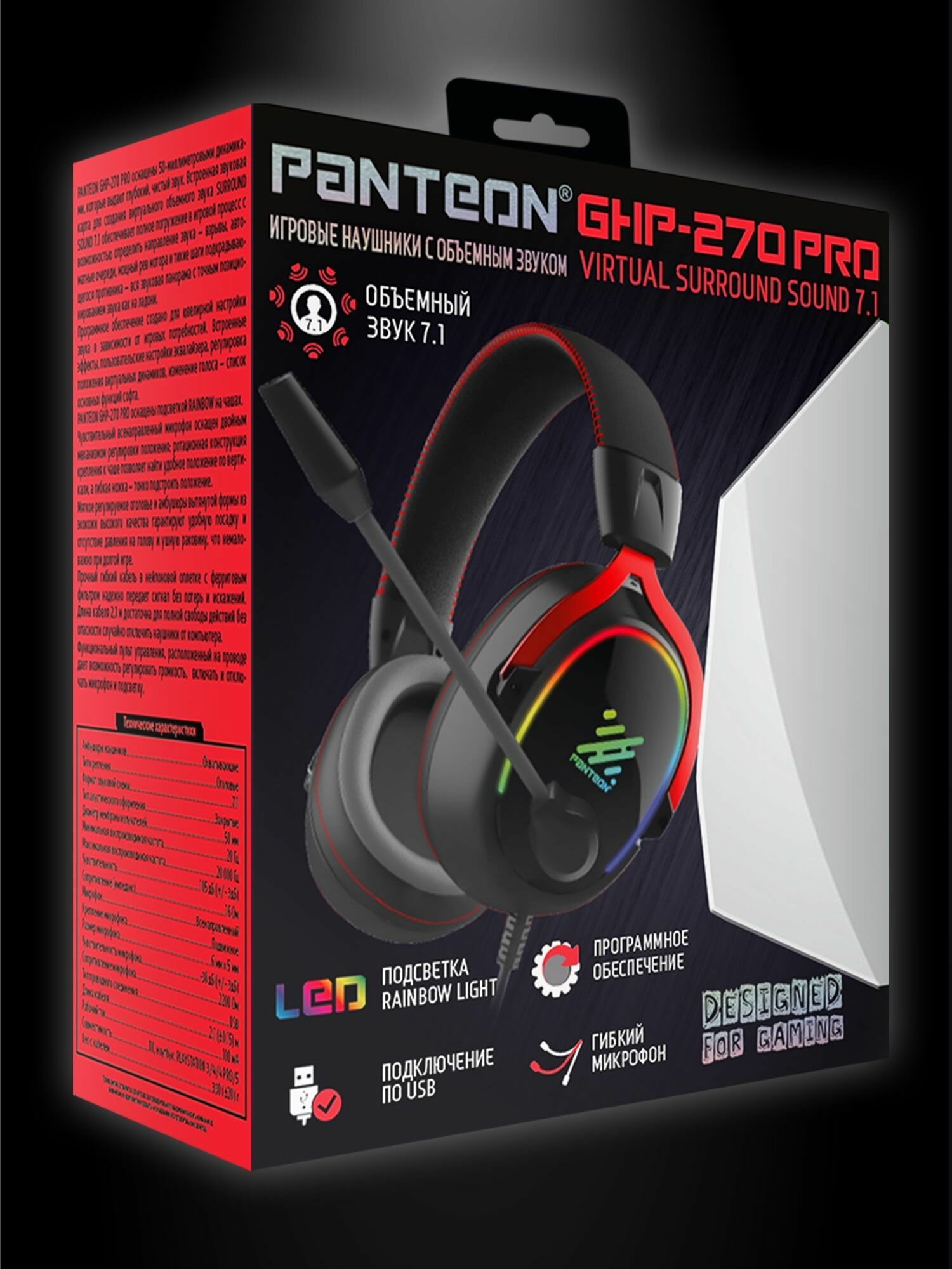 Игровые наушники С объемным звуком VIRTUAL SURROUND SOUND 7.1 PANTEON GHP-270 PRO черные-красные интересное: