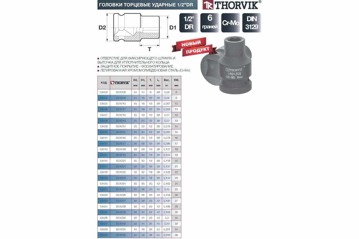 Головка шестигранная ударная THORVIK 1/2 12 мм интересное: