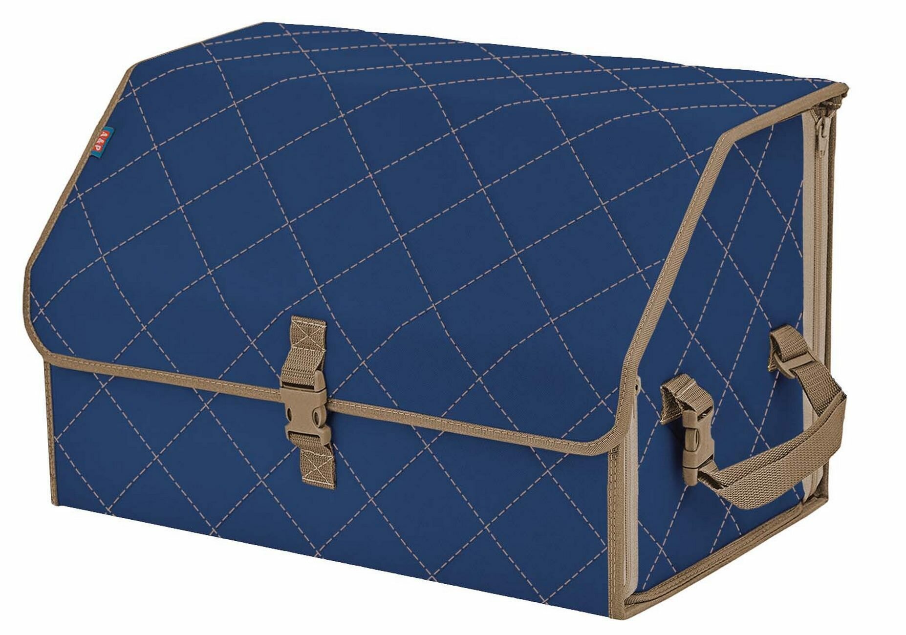 Органайзер-саквояж в багажник "Союз" (размер XL Plus). Цвет: синий с бежевой прострочкой Ромб.