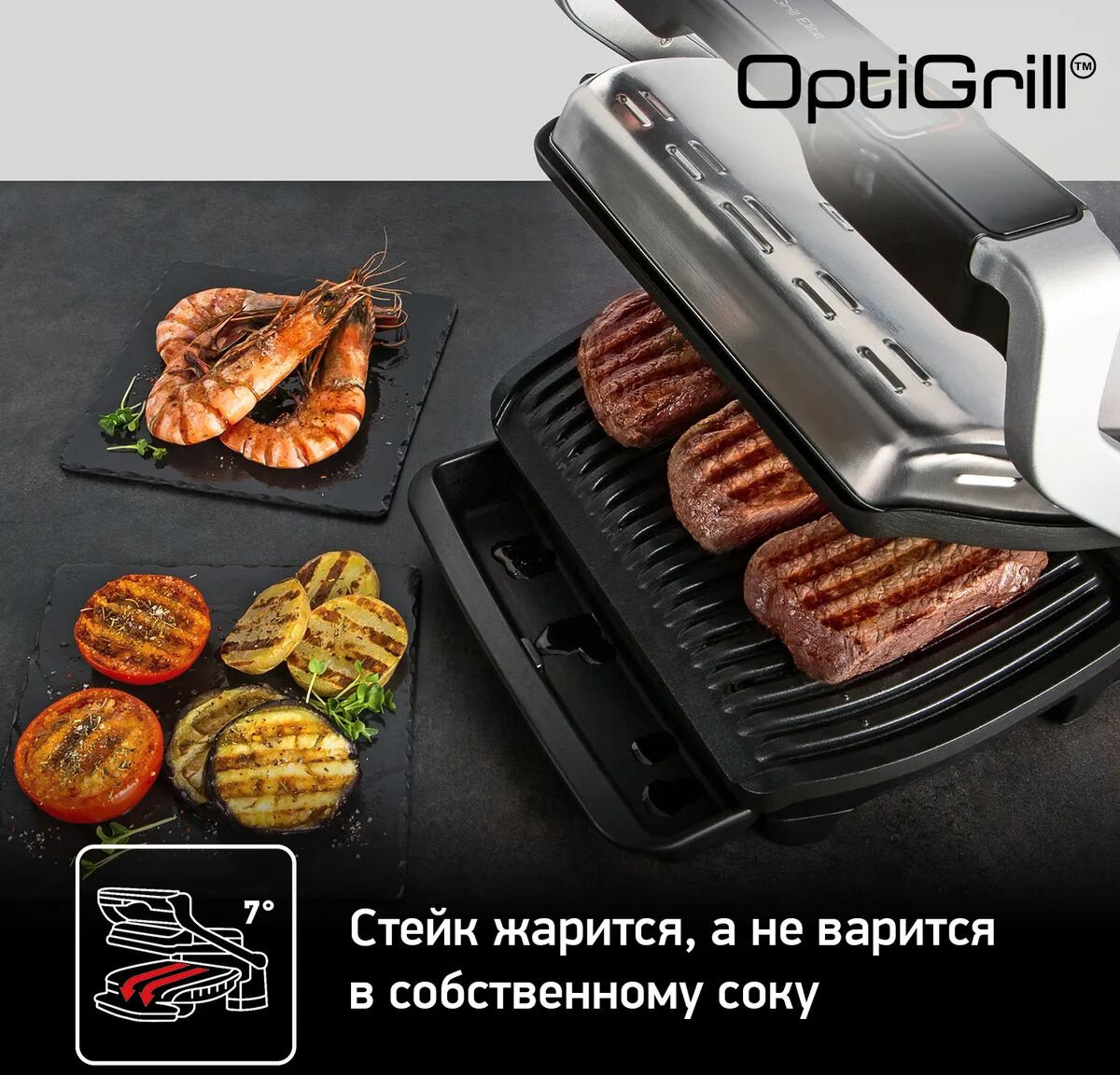 Электрогриль с насадкой-противнем, Tefal, 2000 Вт, 9 программ, серебристого/черного цвета