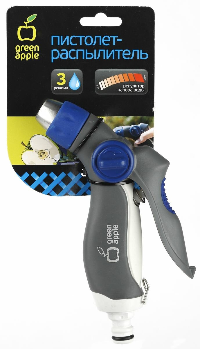 Green Apple GWHM20-040 GREEN APPLE Пистолет-распылитель, пластик, регулируемая латунная форсунка, 3 режима