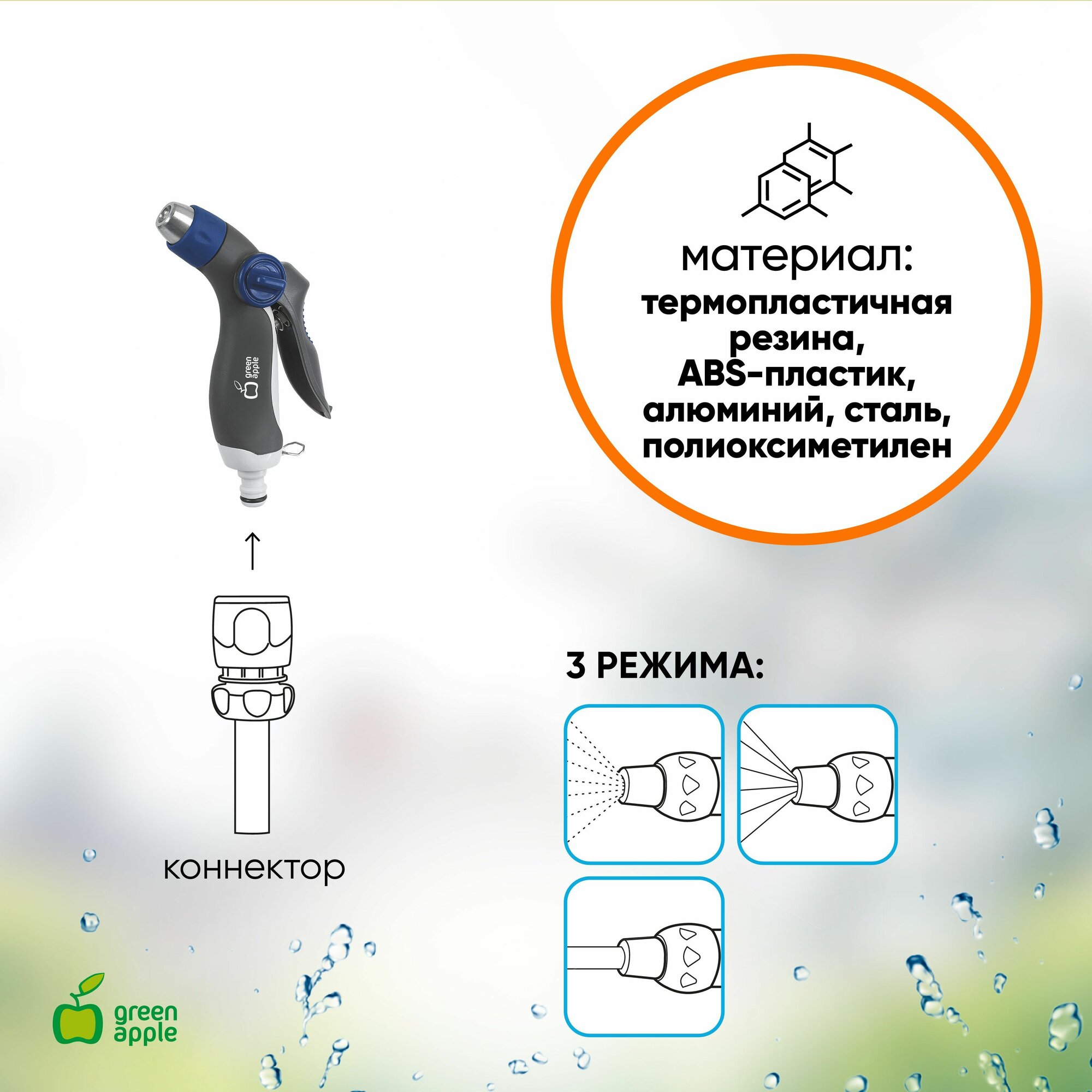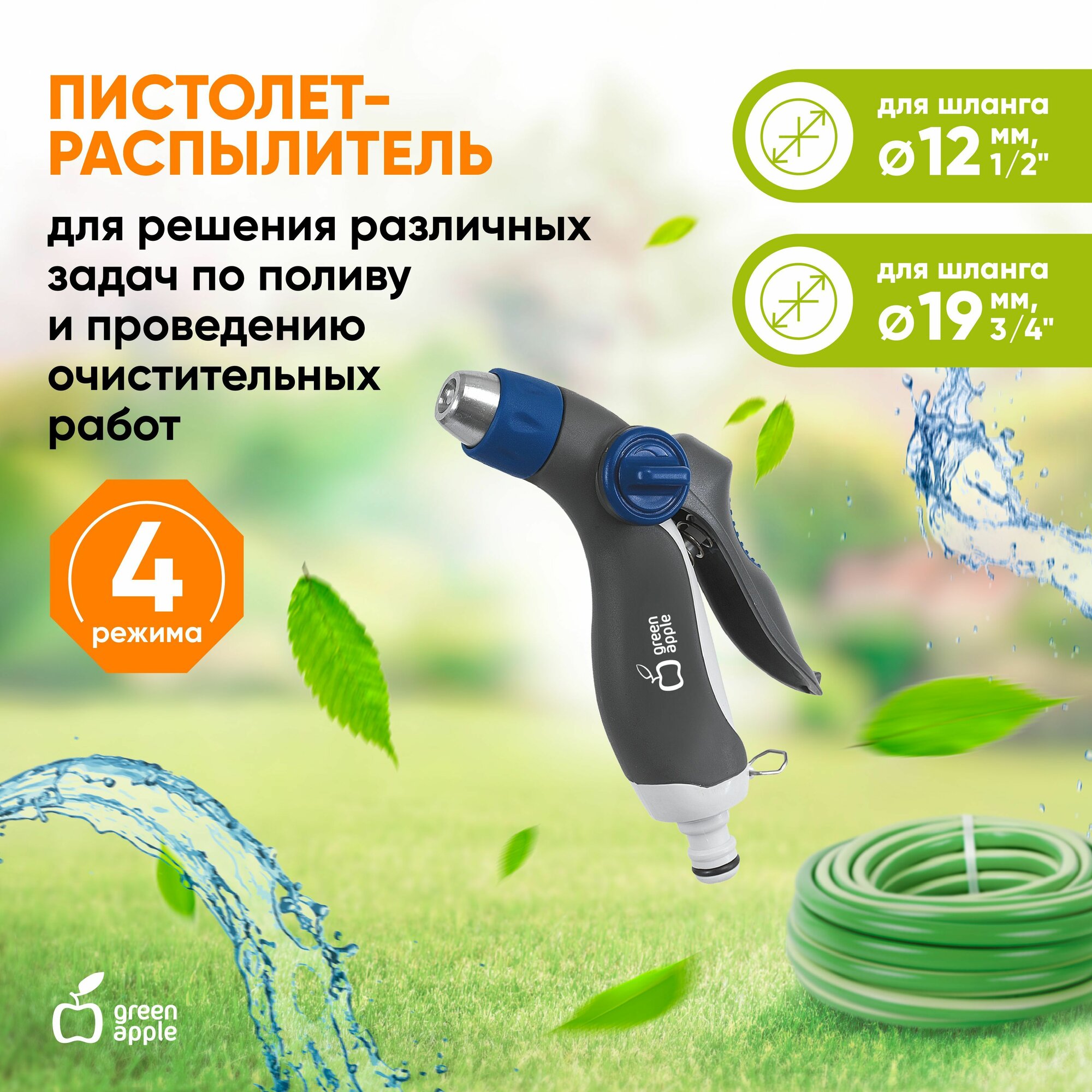 Пистолет для полива GWHM20-040 GREEN APPLE, пластик, регулируемая латунная форсунка, 3 реж интересное: