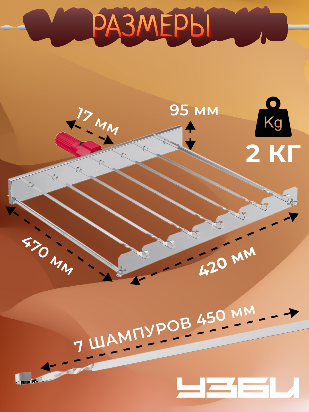 УЗБИ ЧУДО-7, Мангал-автомат, 7 шампуров, с двигателем