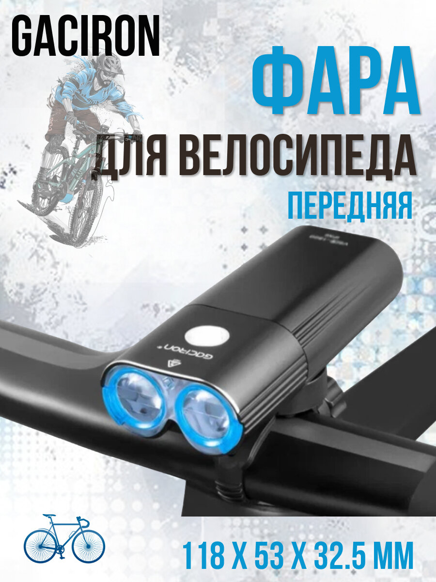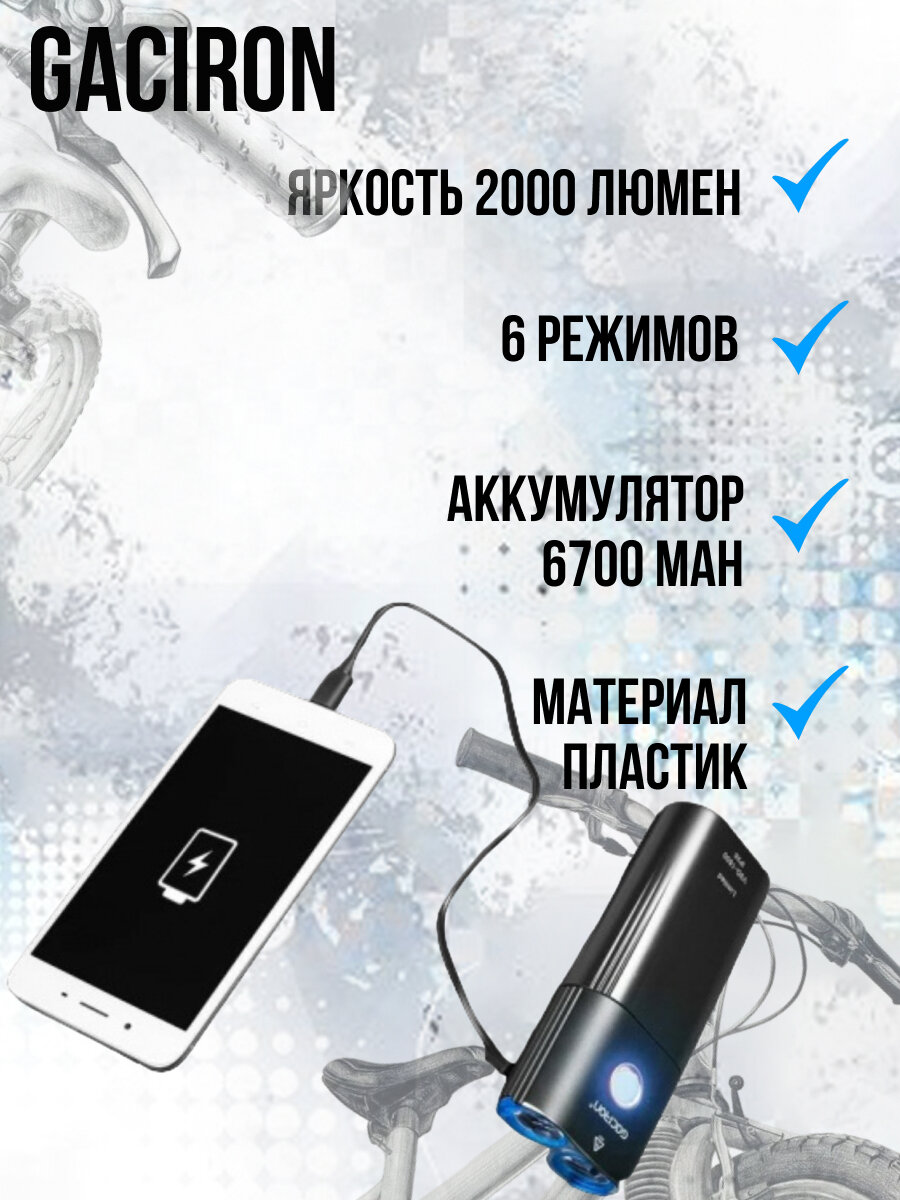Фара велосипедная GACIRON 2000LM 6 режимов USB-C 6700 mAH