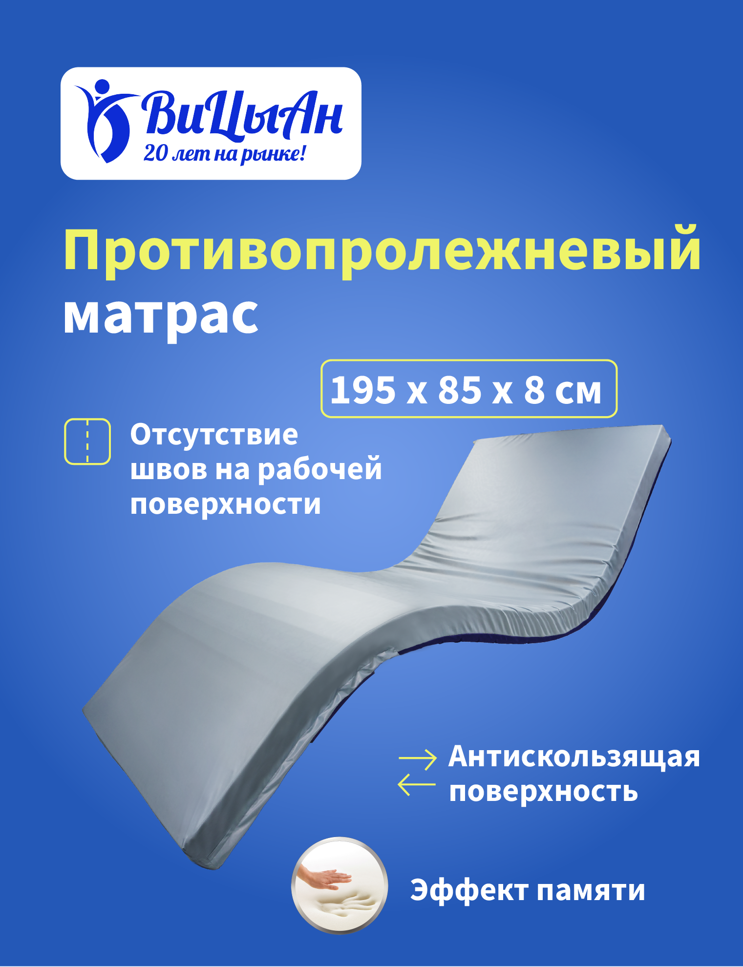 ВиЦыАн Матрас противопролежневый полиуретановый статический с эффектом памяти 195*85 *8 см см для пожилых людей / лежачих больных и инвалидов интересное: