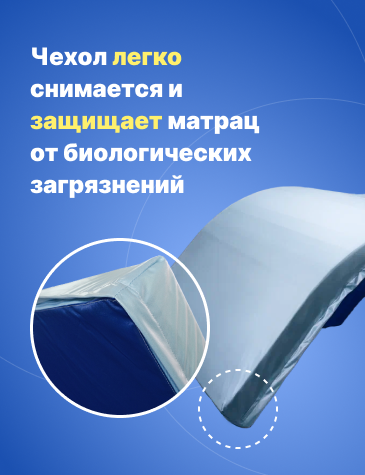 | Минусы: | Полиуретан состоит из трёх частей а не целым блоком, что в общем никаким особым недостатком не проявилось. Ручки наматрасника абсолютно декоративные и вес пациента не выдержат. Материал наматрасника скользкий и постельное белье по нему скользит и комкается. |