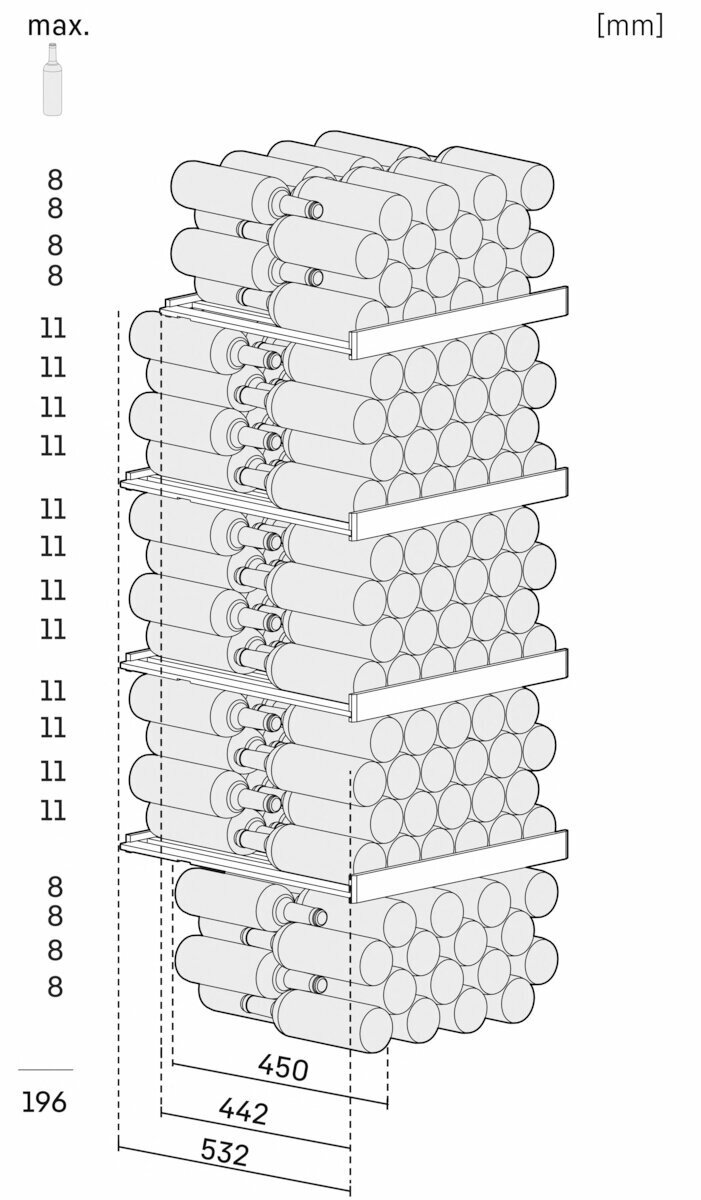 | Емкость винного шкафа, бут. | 196 |