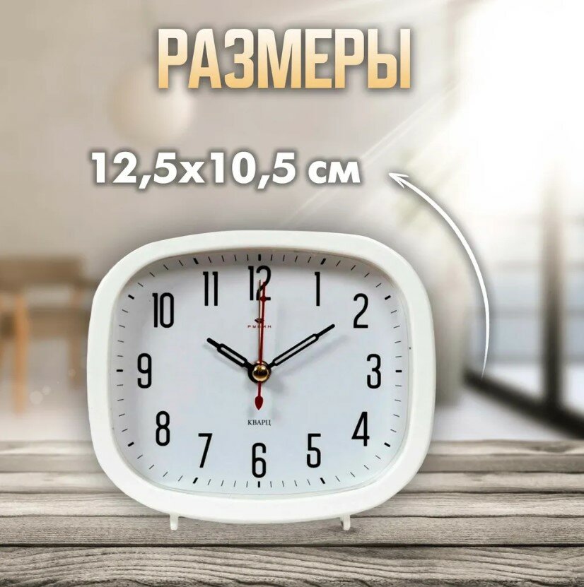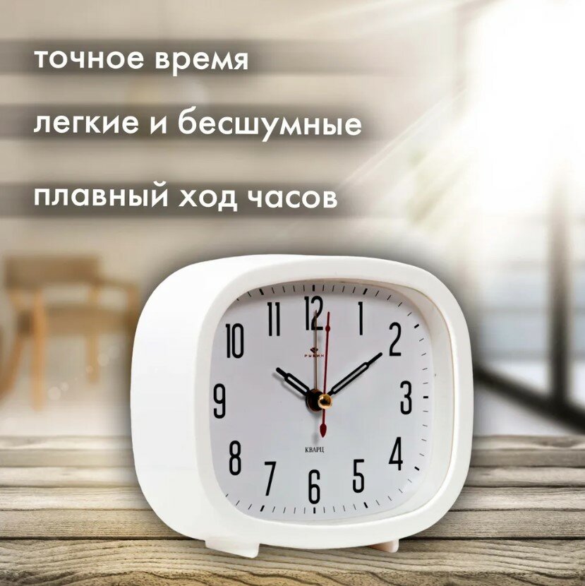 Рубин Будильник "Классика", дискретный ход, 12.5 х 10.5 х 3.8 см, белый