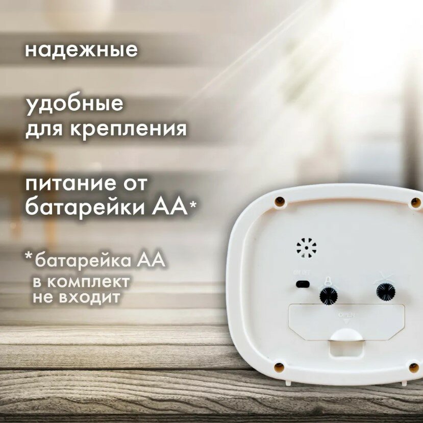 | Плюсы: | Часы ходят пока исправно, приятный белый цвет, приобретала для спальни, на прикроватный столик, механизм работает тихо |