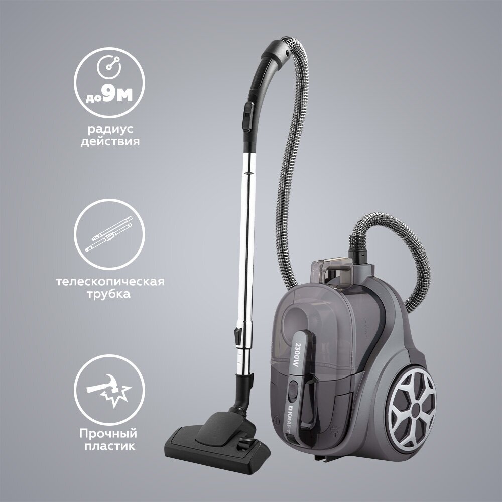 Пылесос Kraft KF-KVC2306 без мешка, серый, 2300Вт с Hepa - фильтром