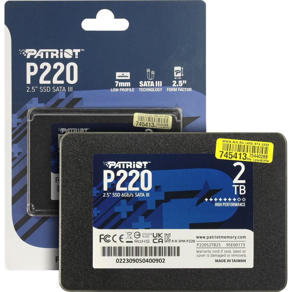 SSD накопитель Patriot P220 P220S2TB25 2ТБ, 2.5", SATA III, SATA