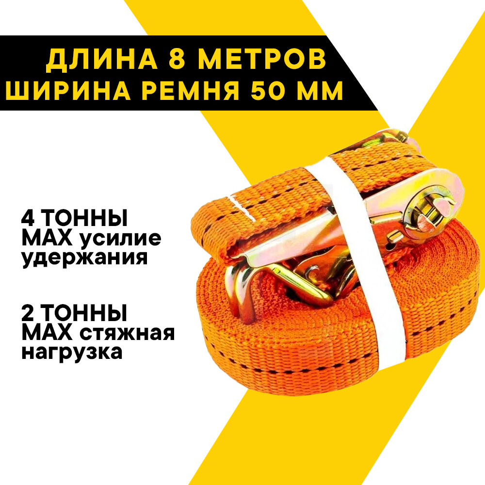 Ремень крепления груза "Топ Авто", ширина ленты 50 мм, 2000/4000 кг, 8 м, механизм 135 мм