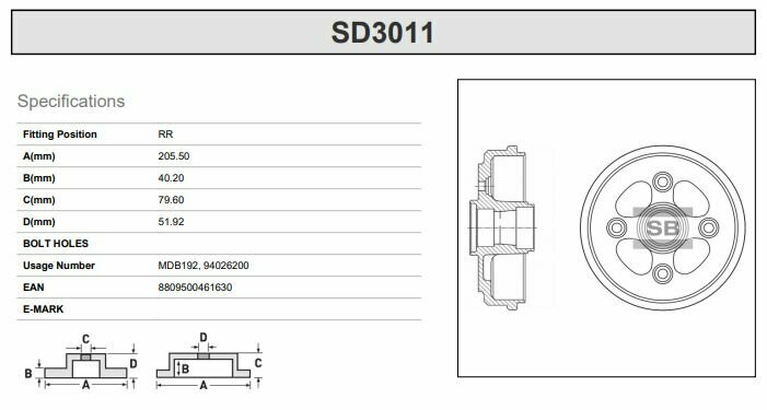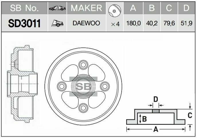 SANGSIN BRAKE SD3011 Барабан тормозной CHEVROLET SPARK I (M100) (2000-2011), DAEWOO MATIZ I (M100) (1998- )/ TICO (1995-2003)