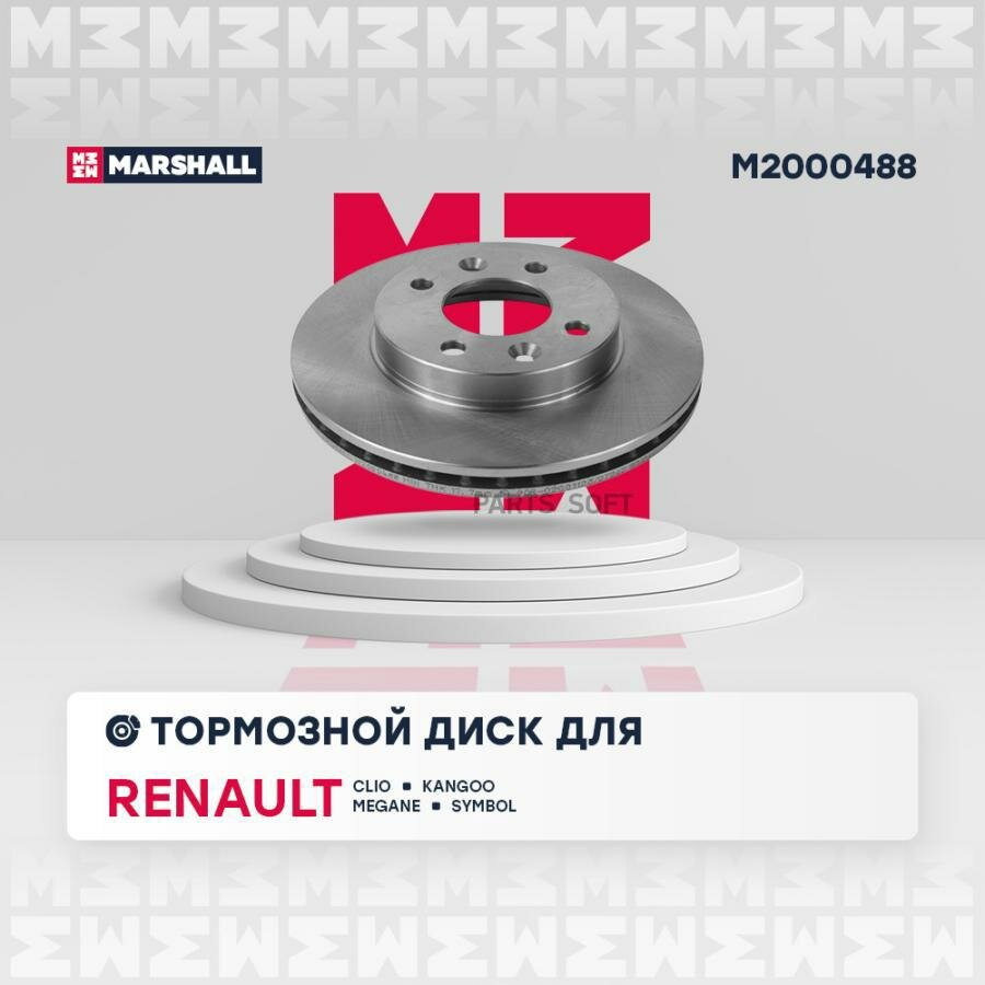 MARSHALL M2000488 Тормозной диск передн. Renault Clio I, II 90- / Kangoo I 97- / Megane I 96- / Symbol I, II 98- () | перед прав/лев |