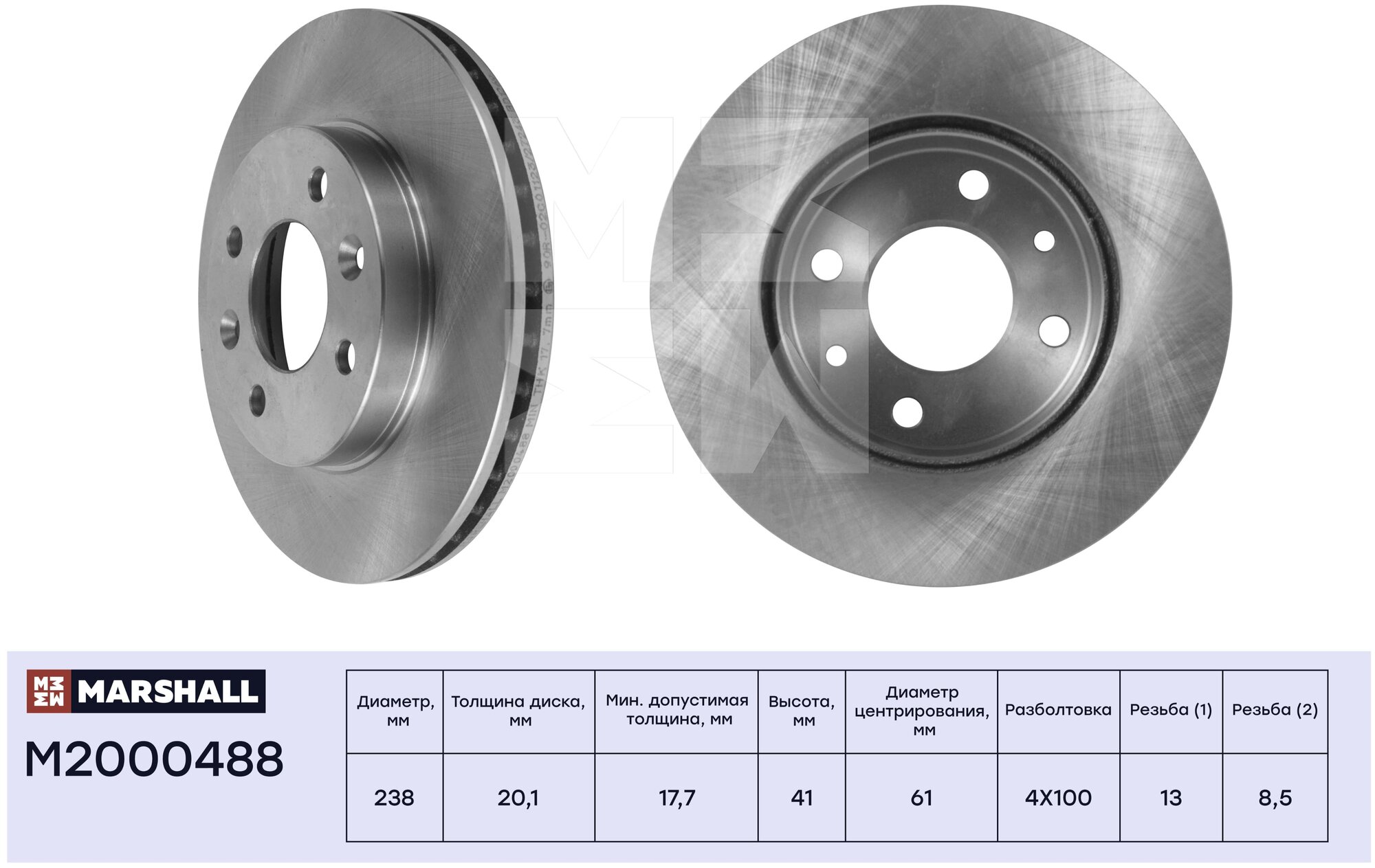 Тормозной диск передн. MARSHALL M2000488 (мин. 1 шт)