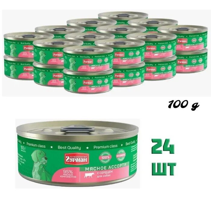 Четвероногий Гурман для щенков Мясное ассорти с Сердцем,консервы 100г (24 банки)