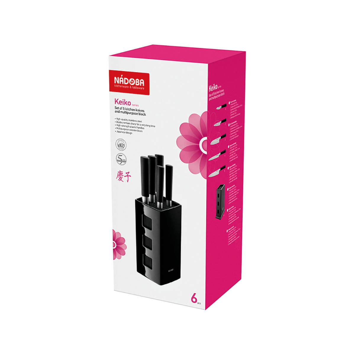 Набор из 5 кухонных ножей с универсальным керамическим блоком, NADOBA, серия KEIKO, арт: 722920