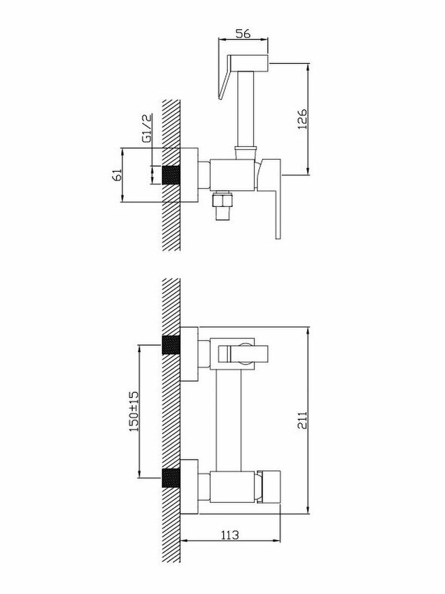 Смеситель для душа Diadonna D47-19004 с гигиенической лейкой, картридж 25 мм, хром