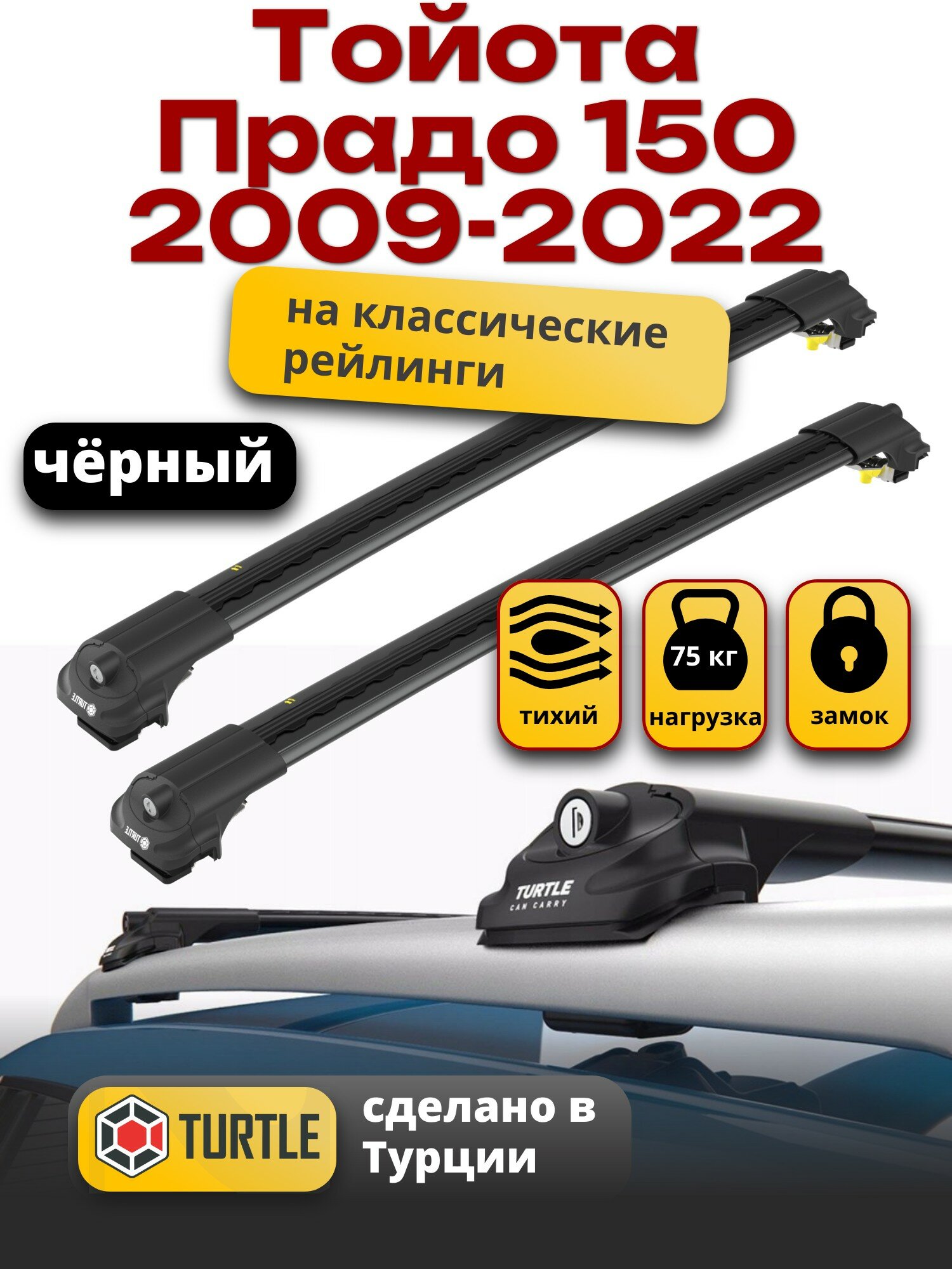 Багажник на крышу Тойота Прадо 150 2009-2022 на рейлинги, черный, Turtle Air-1 интересное: