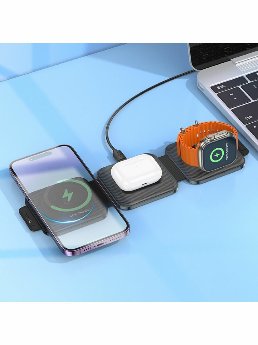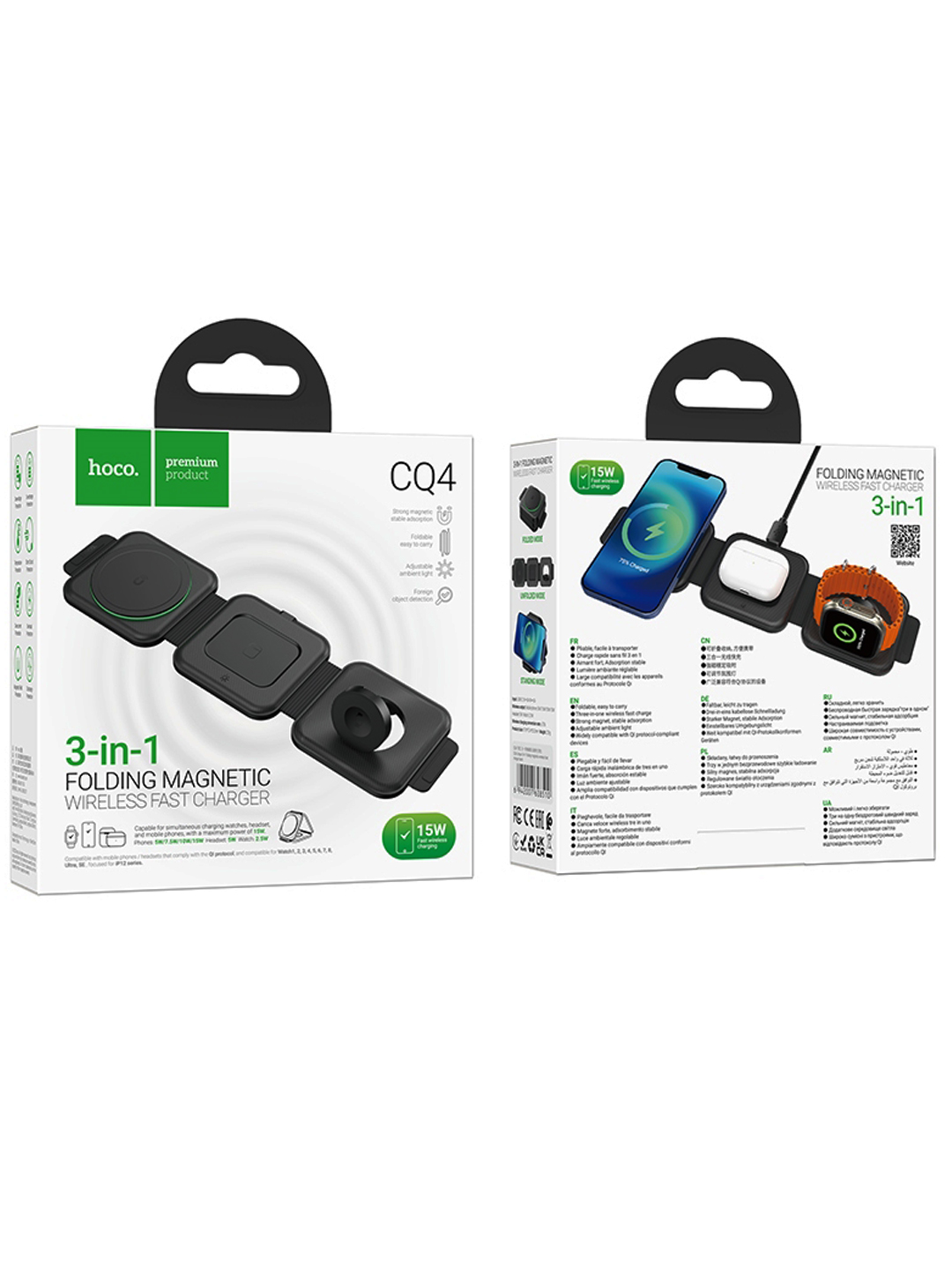 Купить Складное магнитное беспроводное быстрое зарядное устройство 3 в 1, беспроводная зарядка 15 Вт / Hoco CQ4 Fast Charger