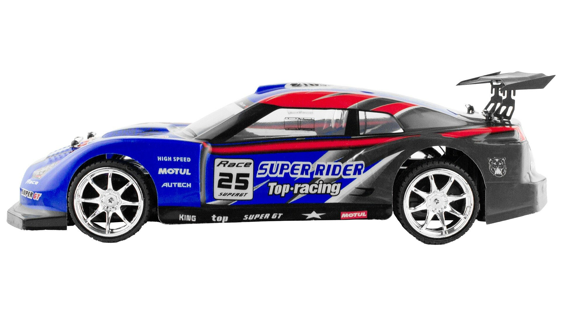 | Комплектация | автомобиль, пульт управления, аккумуляторная батарея Ni-Cd 9,6 В 800 мАч, 2 комплекта колес (шоссейные и для дрифта), зарядное устройство, батарейка для пульта управления (крона 9 В), инструкция |