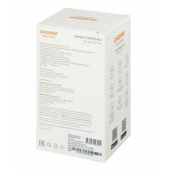 | Экосистема | DIGMA SmartLife / Умный дом VK / Умный дом Яндекса |