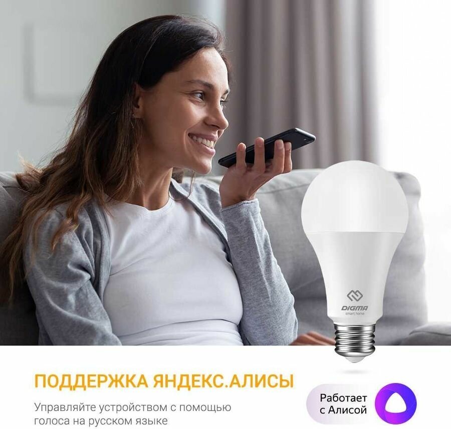 | Плюсы: | Простая лампочка, холодного белого цвета. Легко подключается через стандартное приложение Digma SmartLife. |