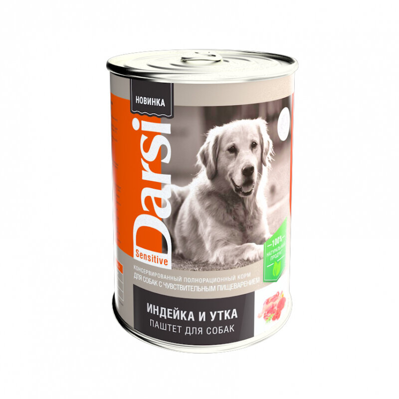 Купить Darsi Консервы (паштет) для собак с чувствствительным пищеварением "Индейка и утка", 410г, 9 штук