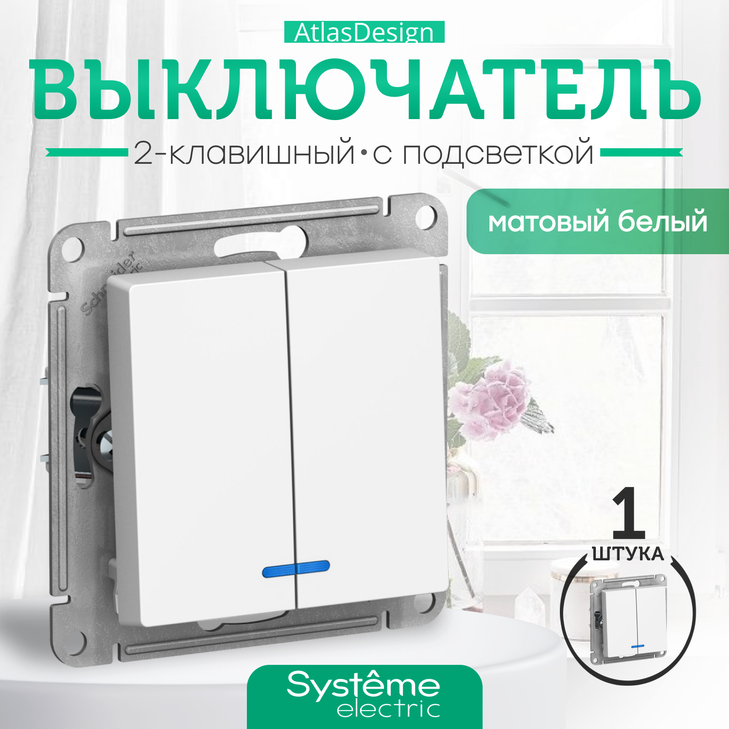 | Комплектация | механизм / механизм с накладкой / Выключатель Atlas Design с подсветкой |