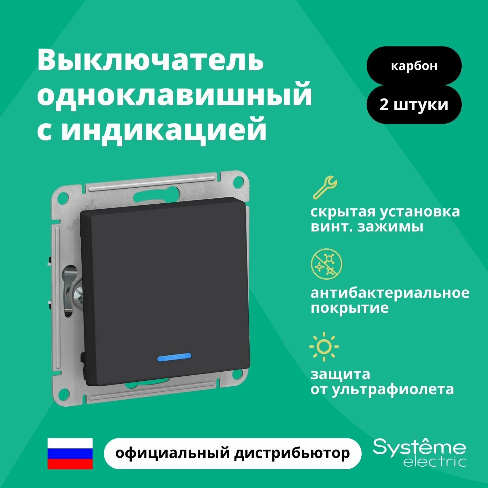 Купить Выключатель электрический Schneider Electric (Systeme Electric) Atlas Design 1-клавишный с подсветкой, 10А, 10 AX, Карбон ATN001013 - 2 шт.