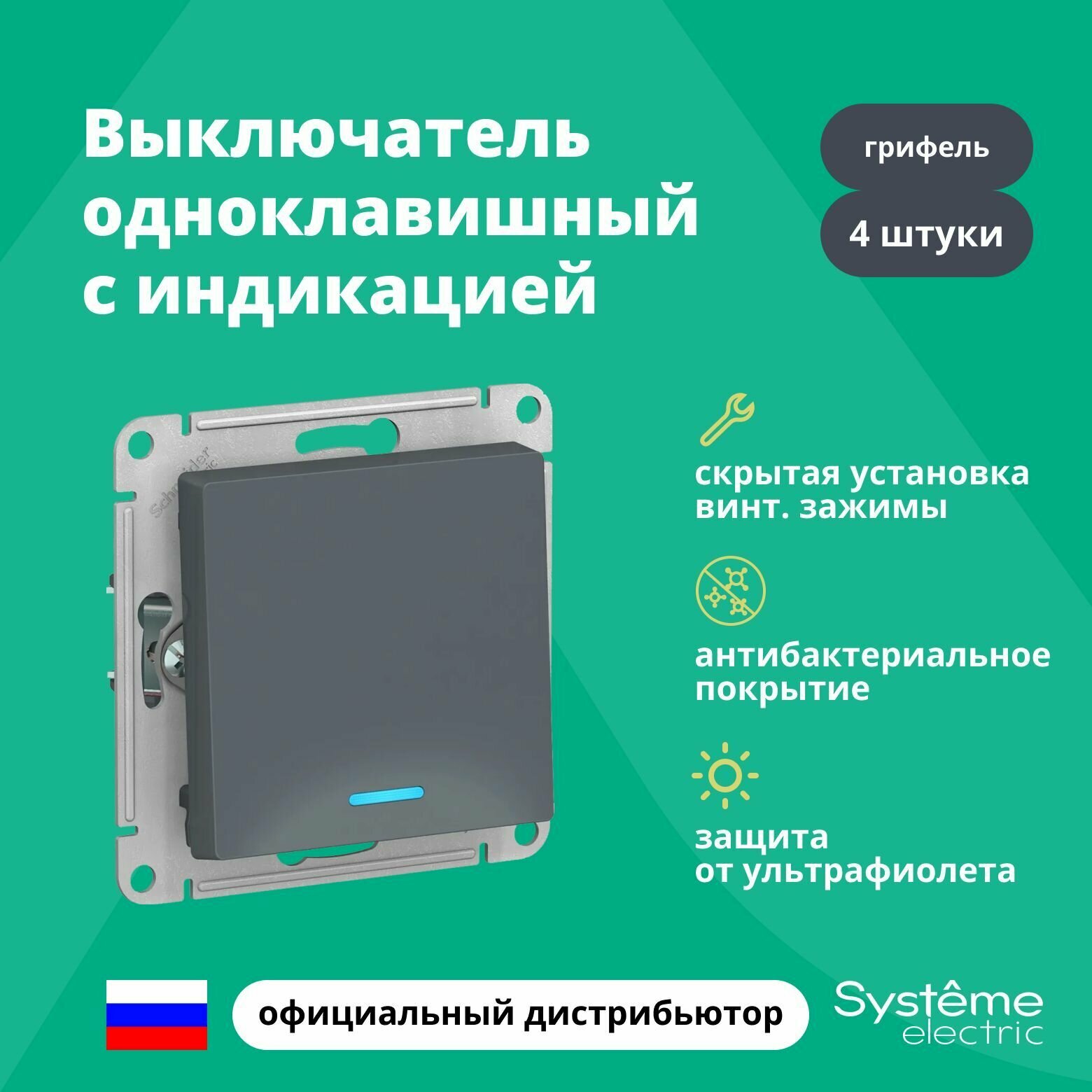 Купить Выключатель электрический Schneider Electric (Systeme Electric) Atlas Design 1-клавишный с подсветкой, 10А, 10 AX, Грифель ATN000713 - 4 шт.