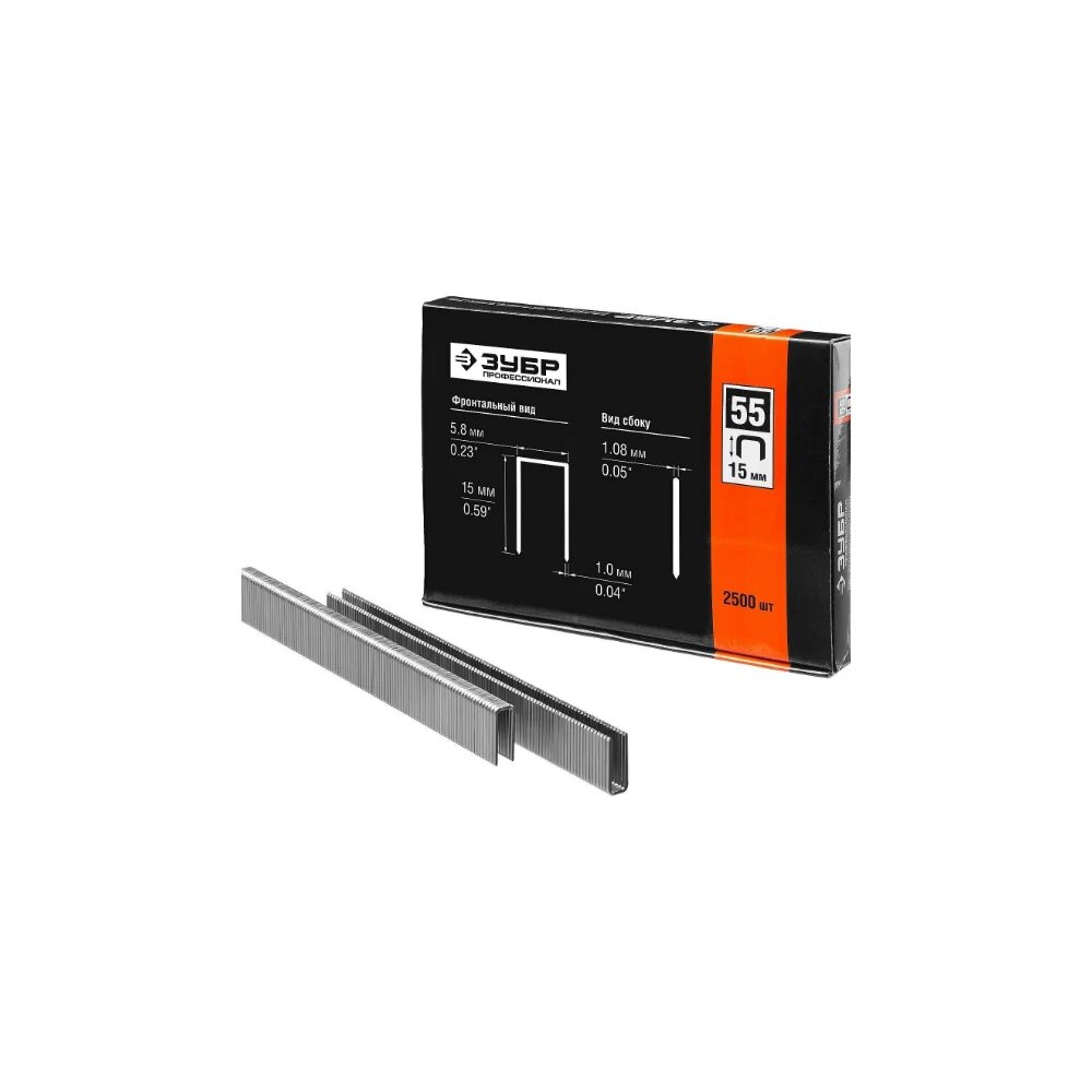 Особотвердые тонкие скобы ЗУБР Профессионал широкие, тип 55, 25 мм, 2500 шт. 31855-25