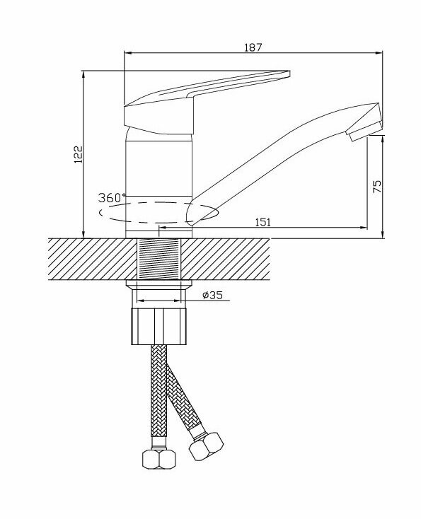 | Комплектация | смеситель, две гибкие подводки 1/2" длиной 40 см |