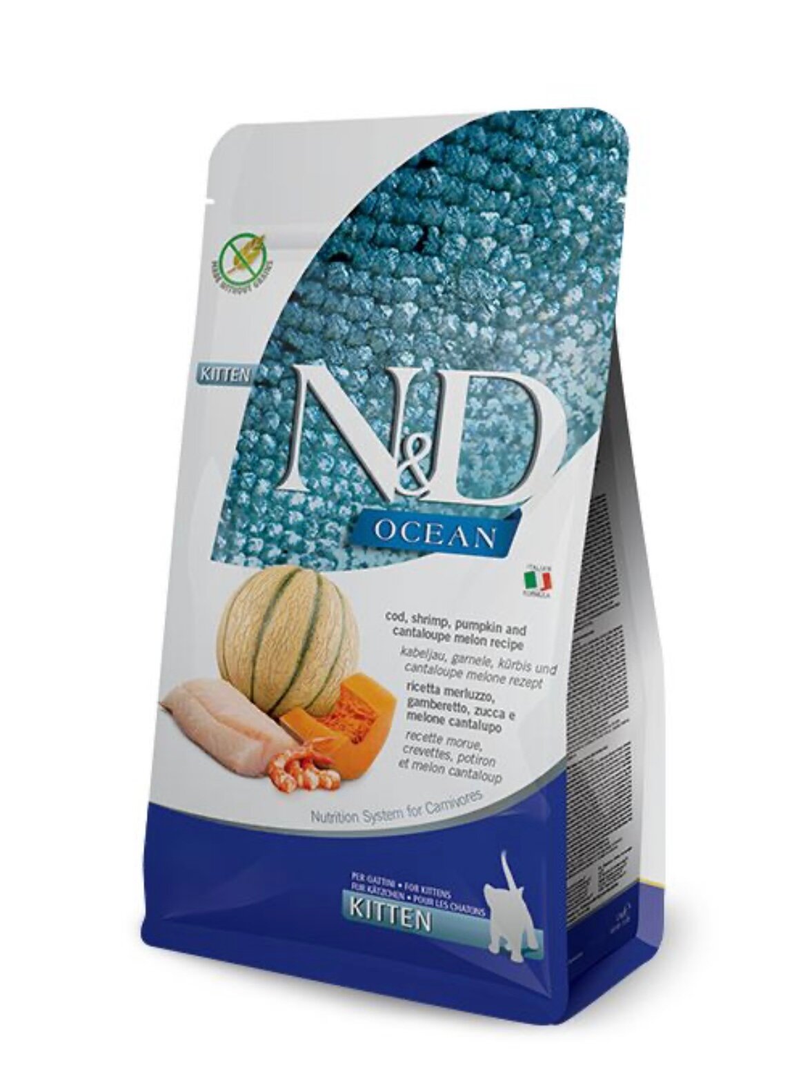 FARMINA CAT N&D OCEAN KITTEN COD, SHRIMP, PUMPKIN & CANTALOUPE MELON беззерновой для котят, беременных и кормящих кошек с треской, креветками, тыквой и дыней (1,5 кг)