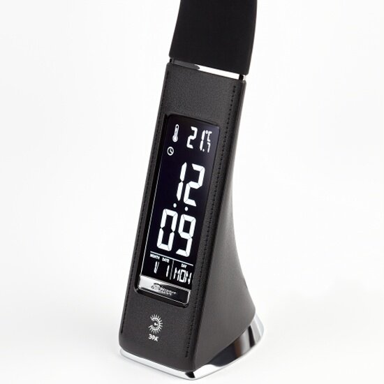Офисная настольная лампа светодиодная с диммером и выключателем термометром будильником и часами NLED-461-7W-BK (ЭРА)