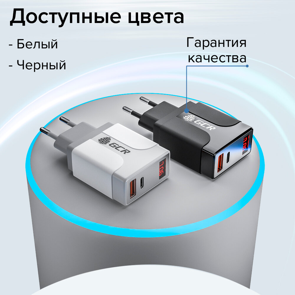 GCR Сетевое зарядное устройство на 2 USB порта (QC 3.0 + PD 3.0 ), белый