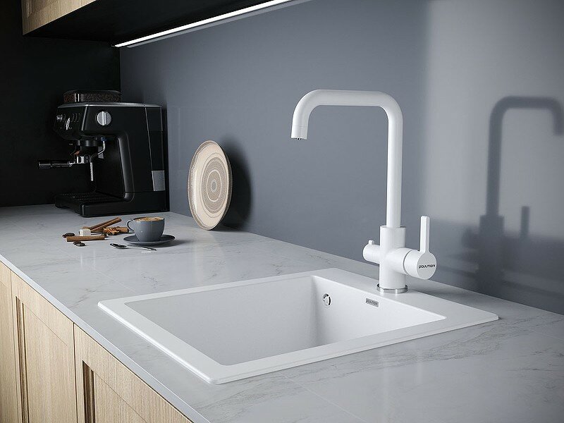 Смеситель для кухни Paulmark LOGAS белый, с подключением фильтра питьевой воды, Lo213021-331