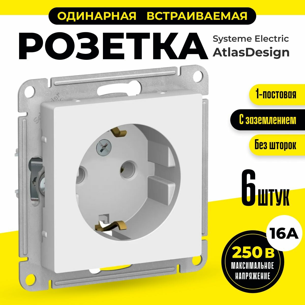 Купить Розетка ATLASDESIGN, скрытый монтаж, с заземлением, белый. ATN000143 Schneider Electric (6шт)