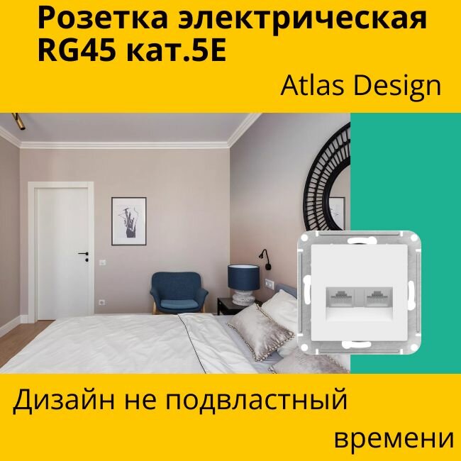 Розетка PC 2-я cat.5e, белый ATLAS DESIGN