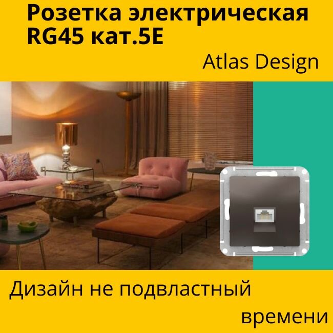 Розетка компьютерная RJ45, кат 5Е AtlasDesign, цвет мокко