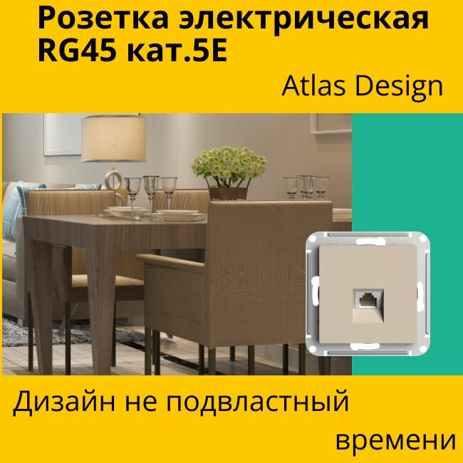 Розетка компьютерная RJ45, кат 5Е AtlasDesign, цвет шампань