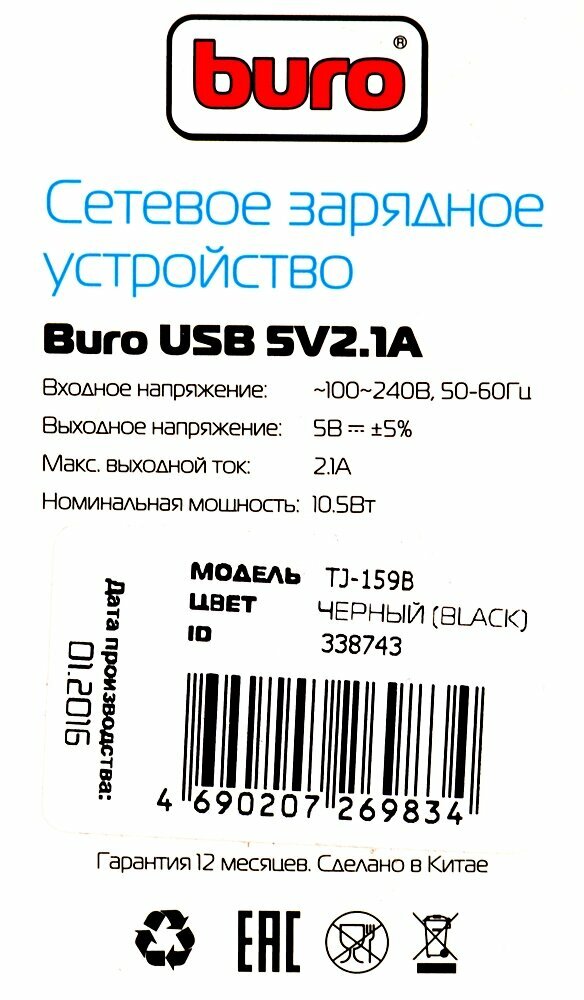 Ниже Вы можете прочитать отзывы на Сетевое зарядное устройство Buro TJ-159b, USB-A, 2.1A, черный, ознакомится с подробными характеристиками, посмотреть интересные обзоры и фотографии на Сетевое зарядное устройство Buro TJ-159b, USB-A, 2.1A, черный.